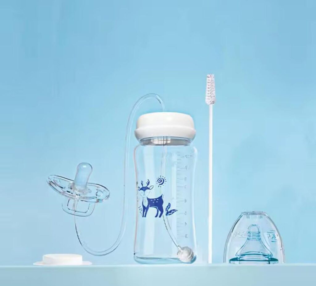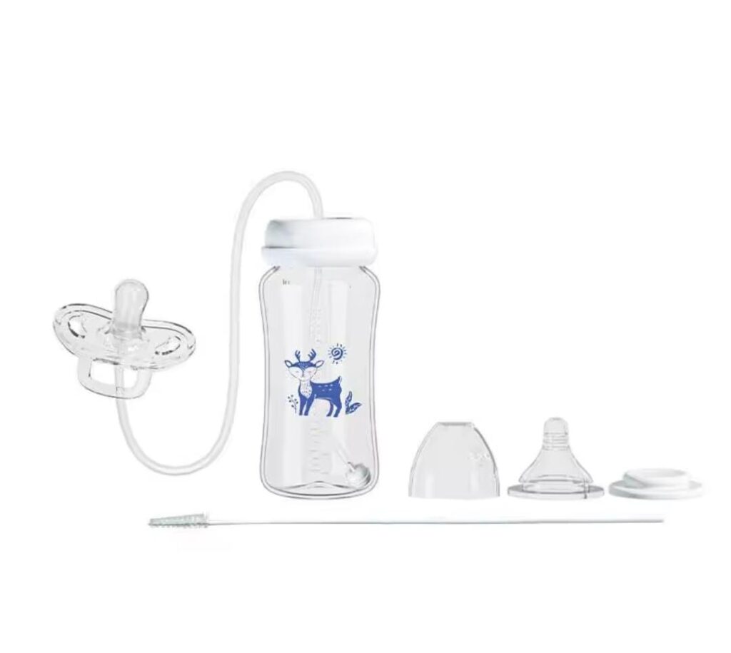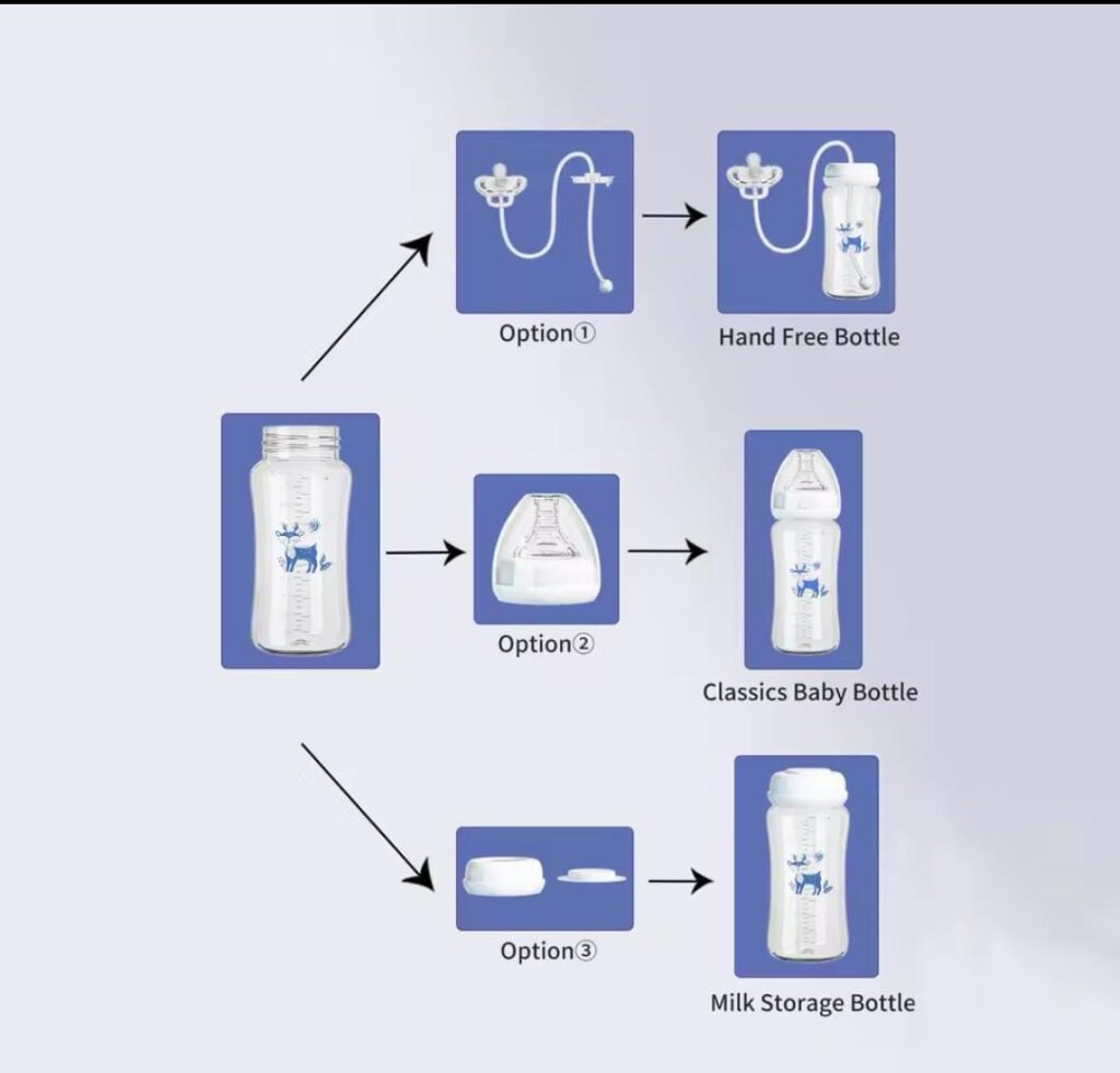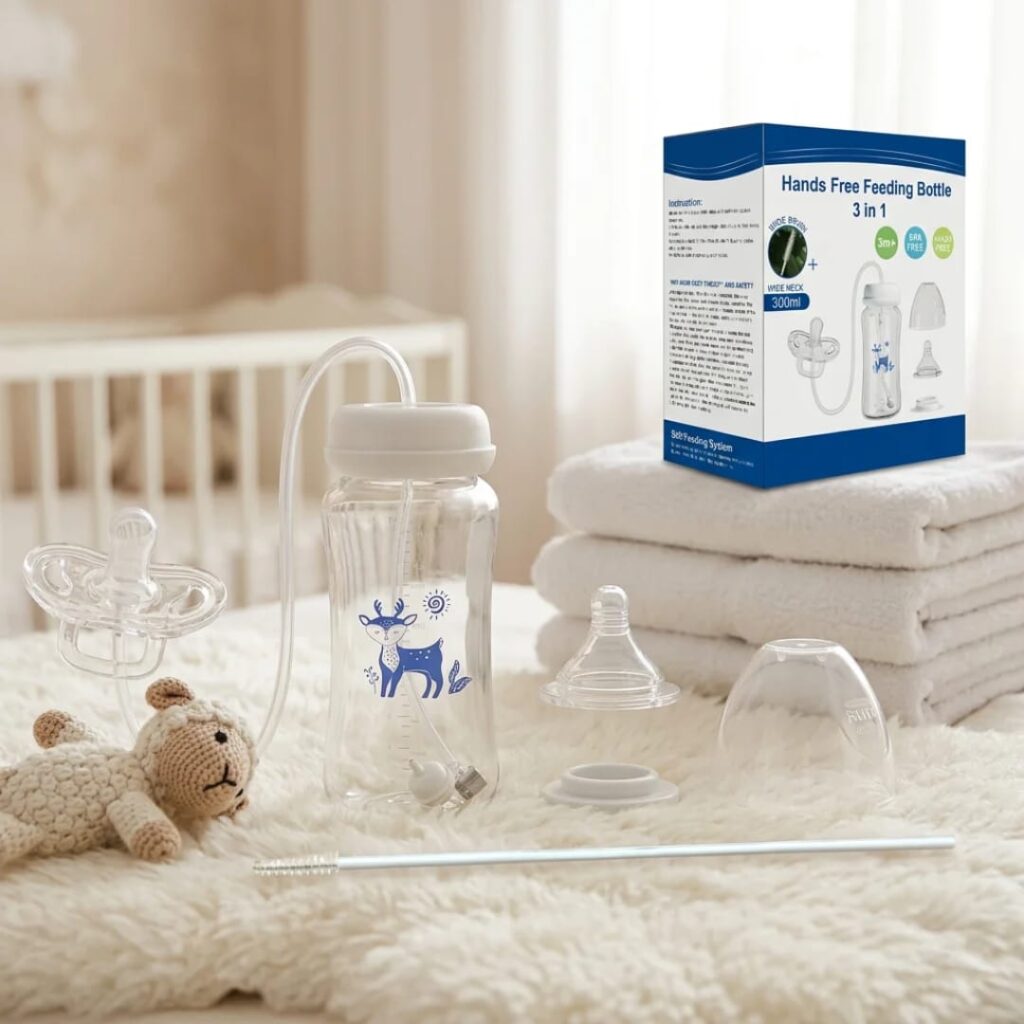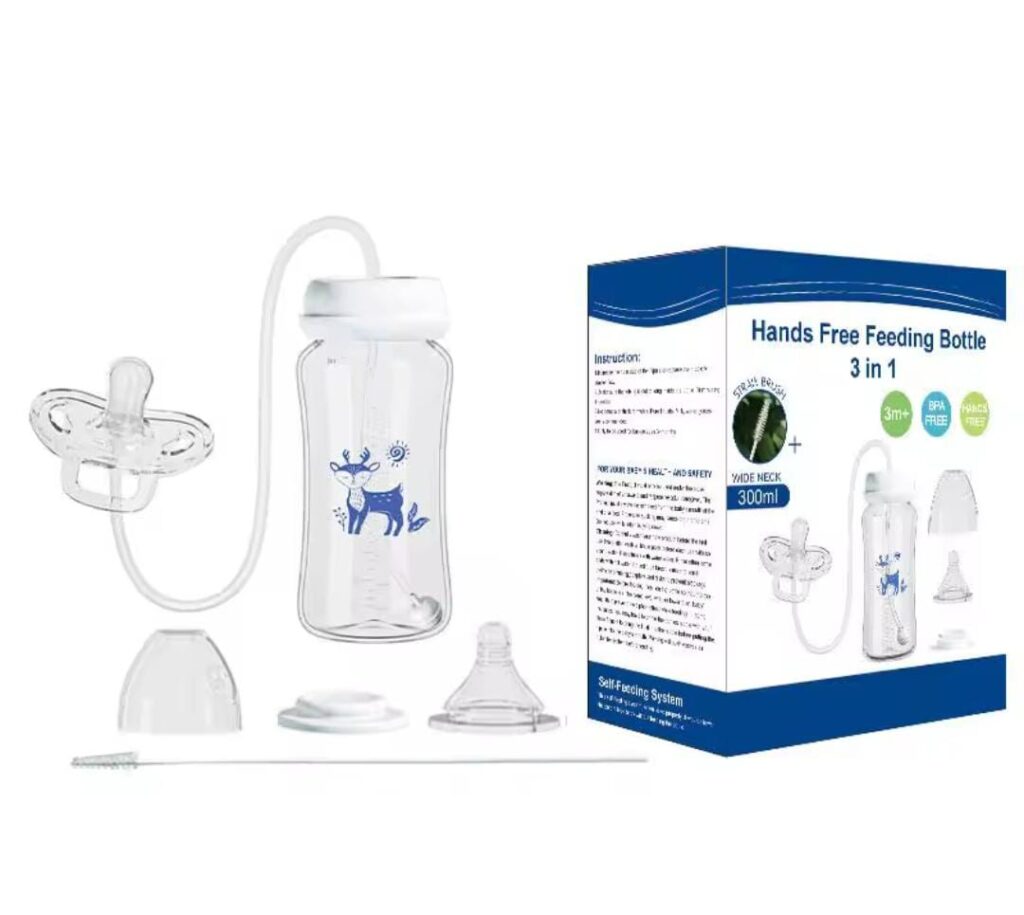 3 In 1 Hands-Free Baby Bottle – Anti-Colic Nursing System 9 oz Baby Bottle with Fast Flow Nipple/Teat 3m+ with Tube Straw Feeding System for Toddler