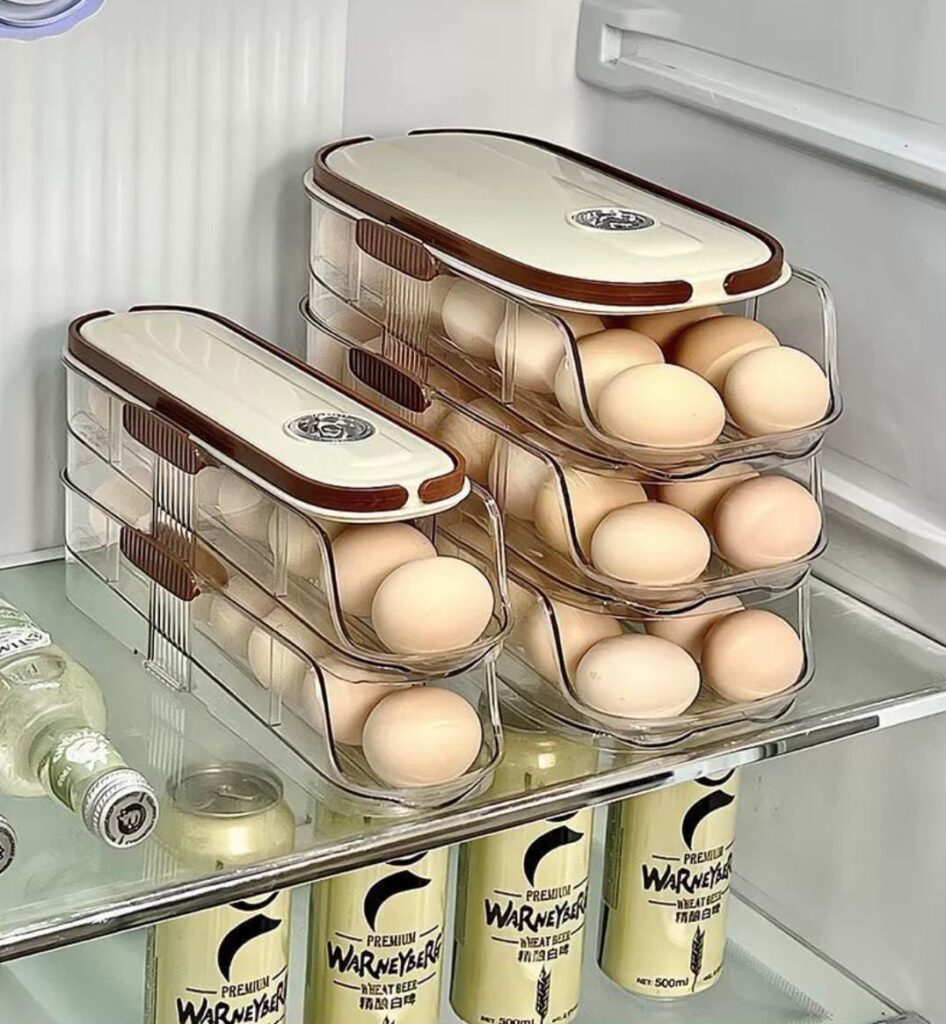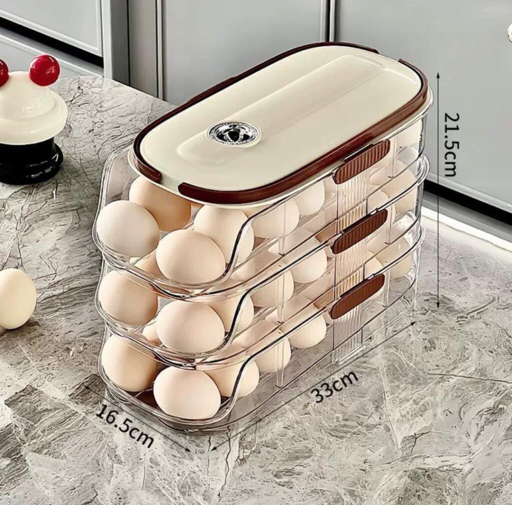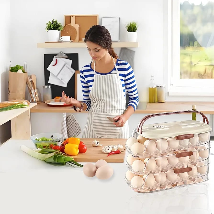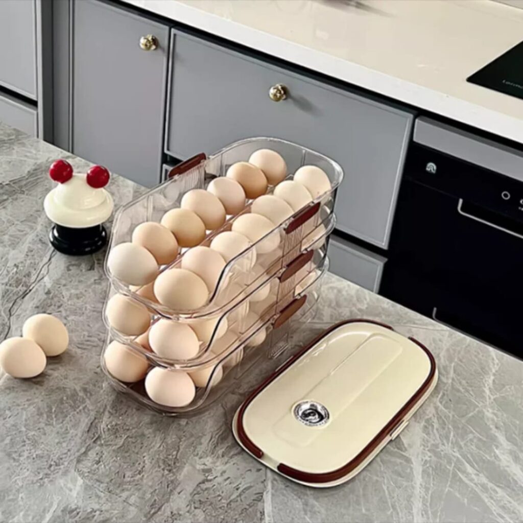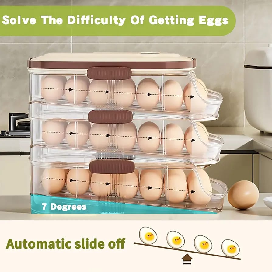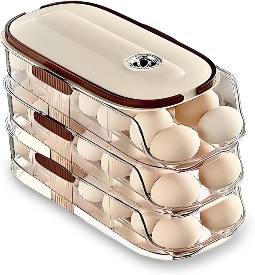 Egg Organizer for Refrigerator,egg Holder for Fridge with Lid and Handle,automatic Rolling Egg Dispenser for Refrigerator,Clear Stackable 3 Tier 42 Eggs Storage,space Saving &Timed Freshness