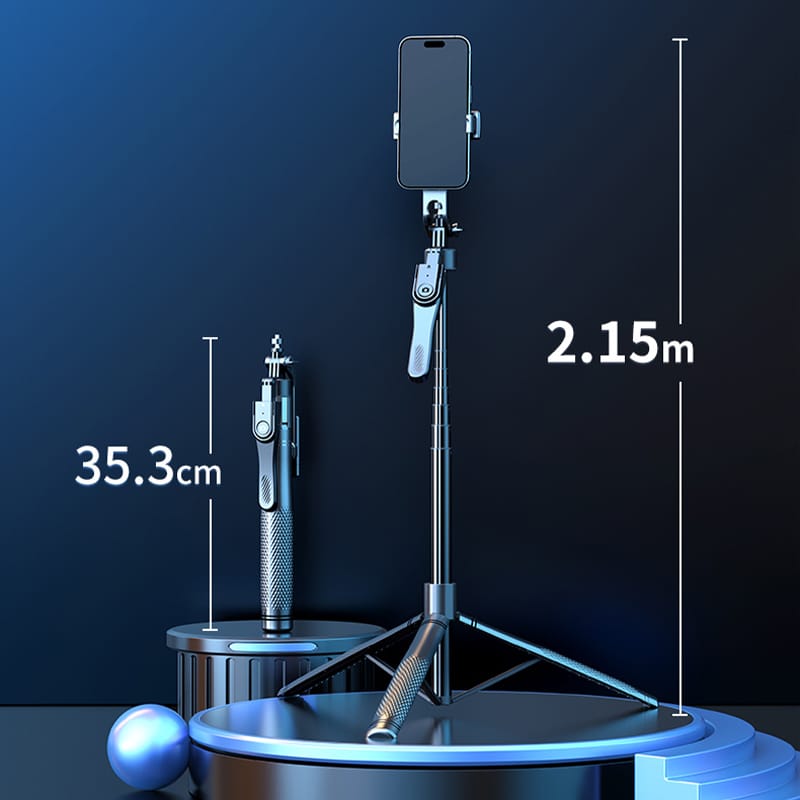 2) Adjustable angle: The maximum height of the telescopic pole can reach 215cm to meet the needs of different shooting heights. Rotation gives you flexibility for optimal viewing angles.