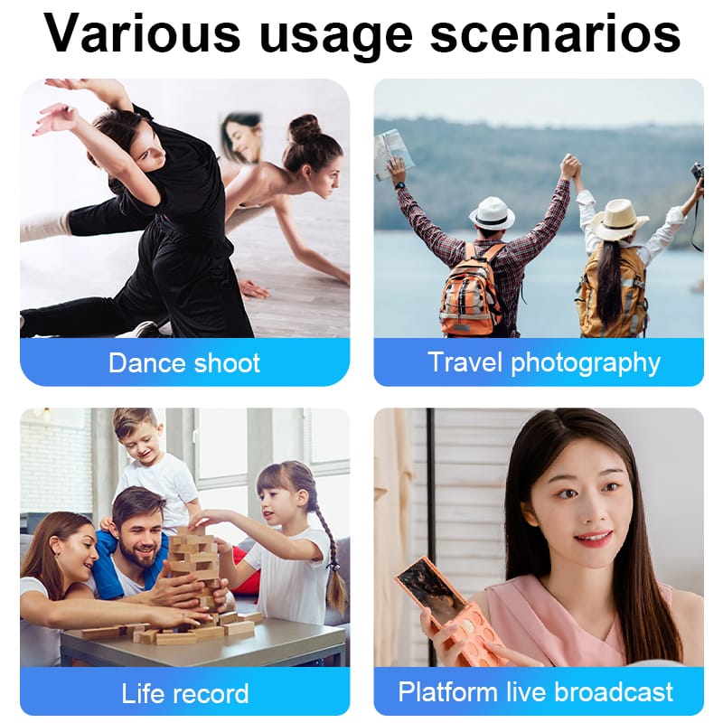 1) Multifunctional design: It is not only a selfie stick, but can also be converted into a mobile phone stand and mobile phone tripod. The operation is very simple, and it is very suitable for taking photos and videos in different scenarios, whether you are traveling, vlogging, live streaming or taking family photos.