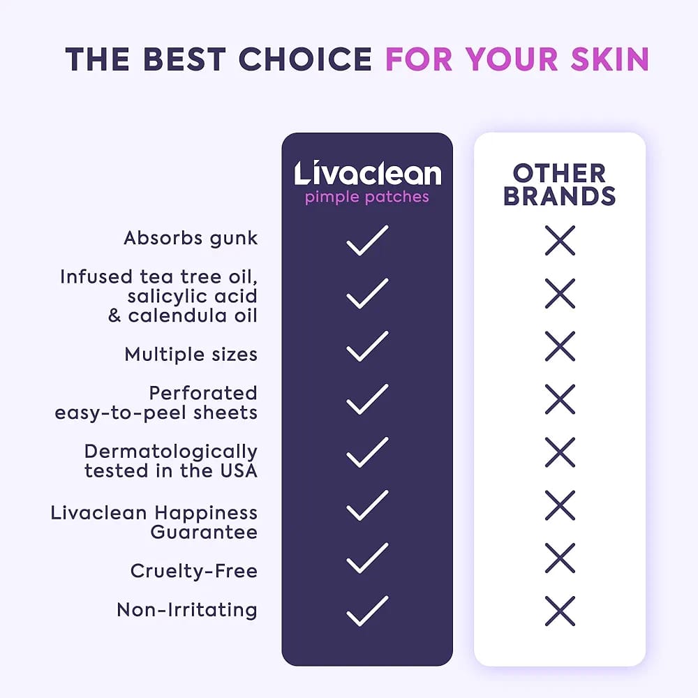🌿 POWER-PACKED FORMULA – Our Livaclean hydrocolloid acne patches are infused w/Tea Tree Oil, Salicylic Acid, and Calendula Oil. This powerful trio halts blemishes and tackles dark spots aka hyperpigmentation, leaving your skin clear and radiant.