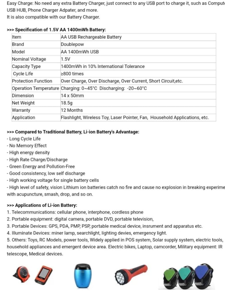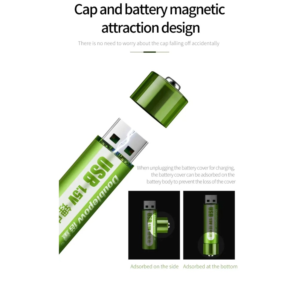 1.5V AA battery 1800mWh USB rechargeable li-ion battery for mouse small fan Electric toy battery high capacity-2pcs