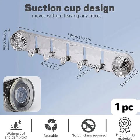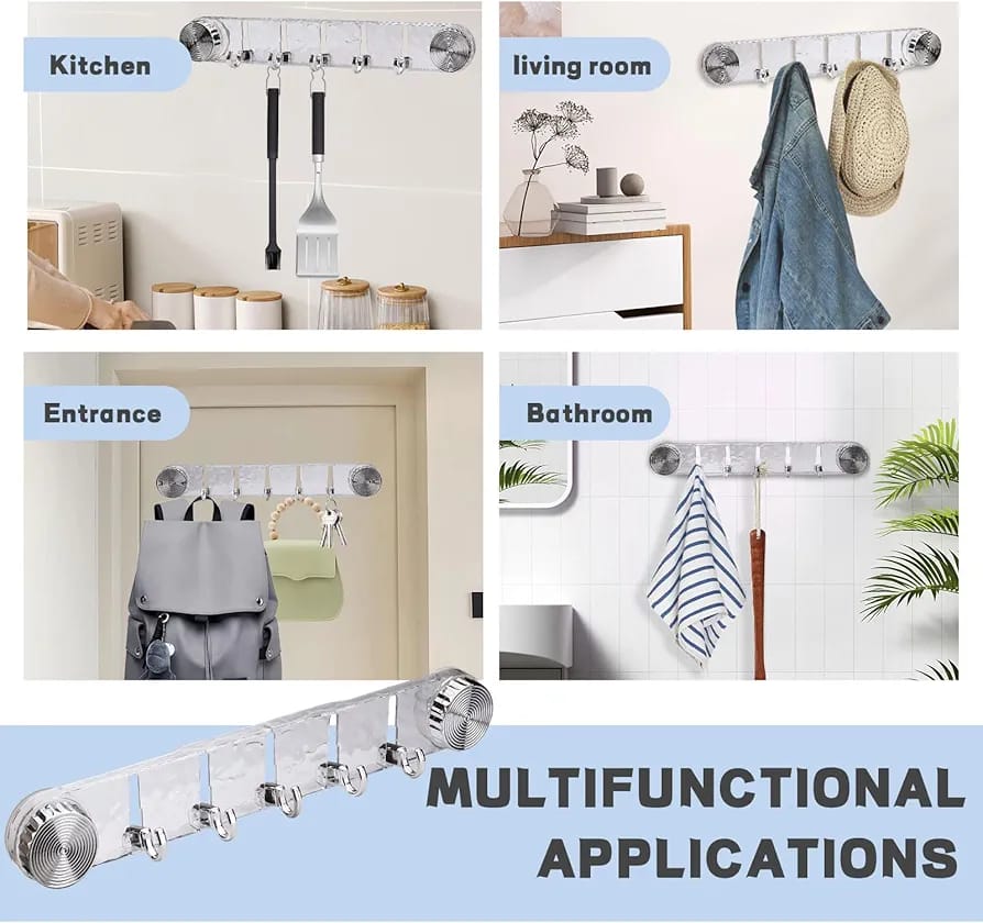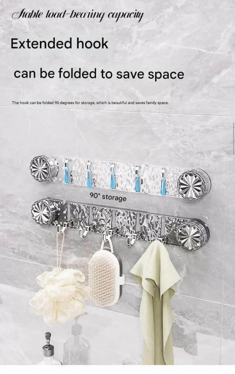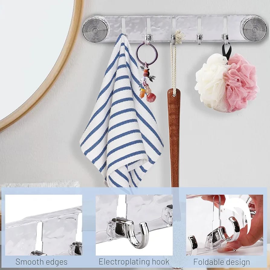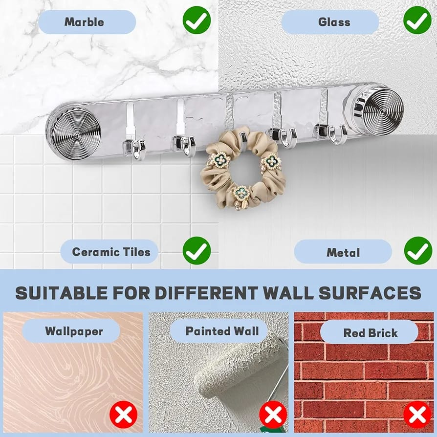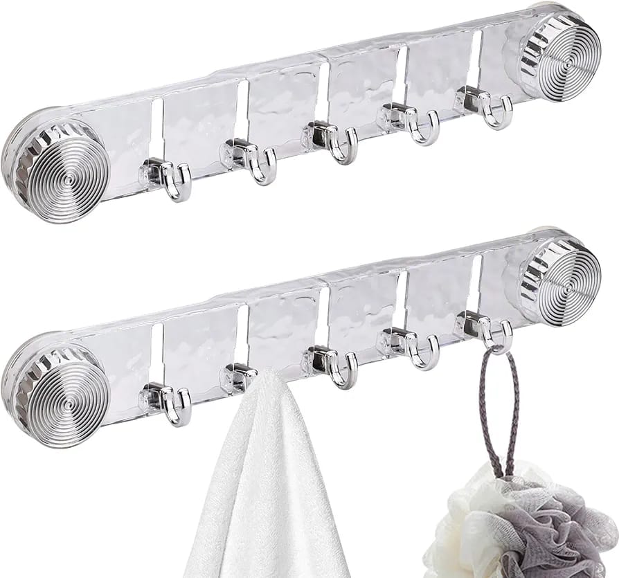 Folding Hooks: Each suction towel hook is equipped with 5 foldable hooks, which can be folded and hidden when not in use, saving space and easy to use