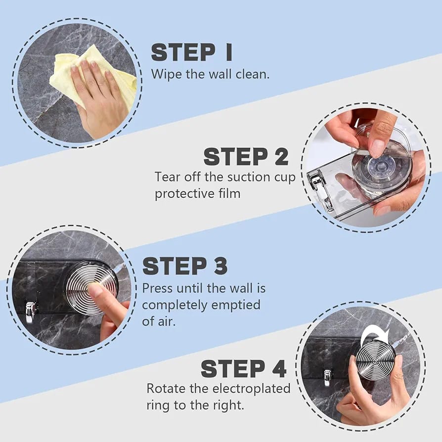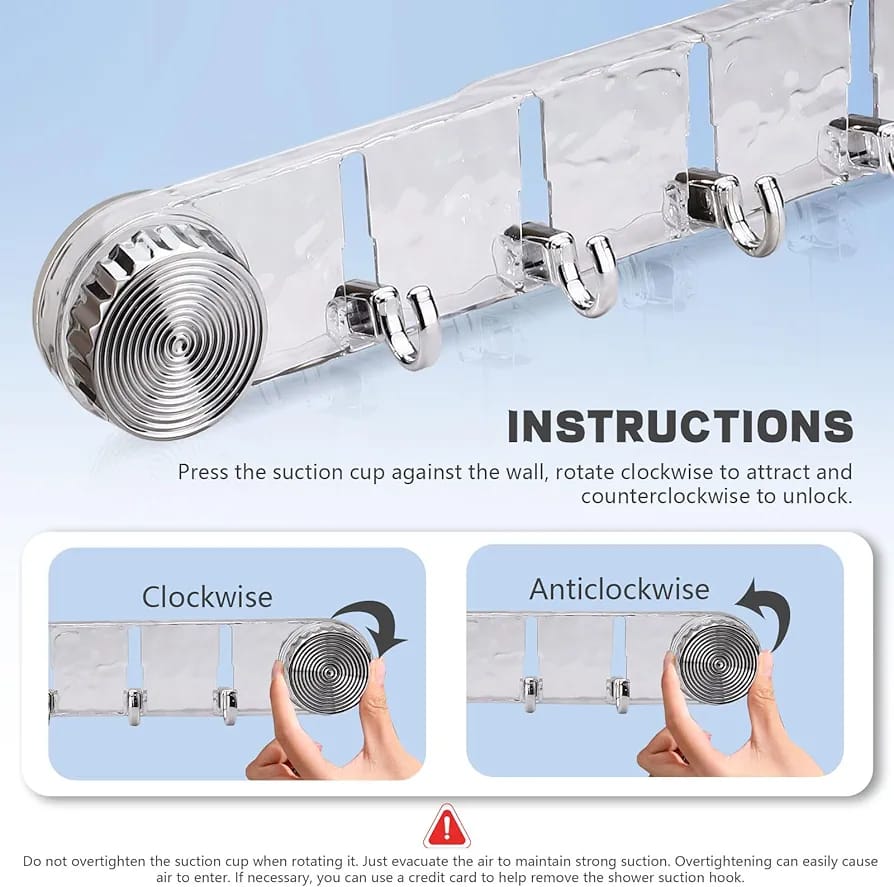 Easy to Install and Remove: Press the suction cup against the wall, rotate clockwise to adsorb, and rotate counterclockwise to unlock. Note that the shower suction cup hooks can only attach to smooth, non-porous surfaces such as glass, tiles, etc. Do not overtighten the suction cup when rotating it