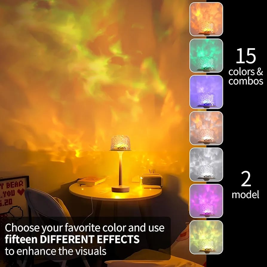 • Vibrant RGB Water Wave Projection: Enhance your room’s ambiance with vibrant RGB colors or a soothing warm glow. Perfect for movie nights, parties, or as a night light for kids. The wave projection creates a captivating visual effect for any occasion.
