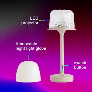 Dual-Mode Aurora Table Lamp & Wave Projector: This versatile table lamp features a removable shade, transforming from a warm night light to a mesmerizing wave projector. Perfect for creating a relaxing ambiance in your bedroom, living room, or kids’ room.